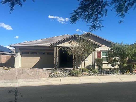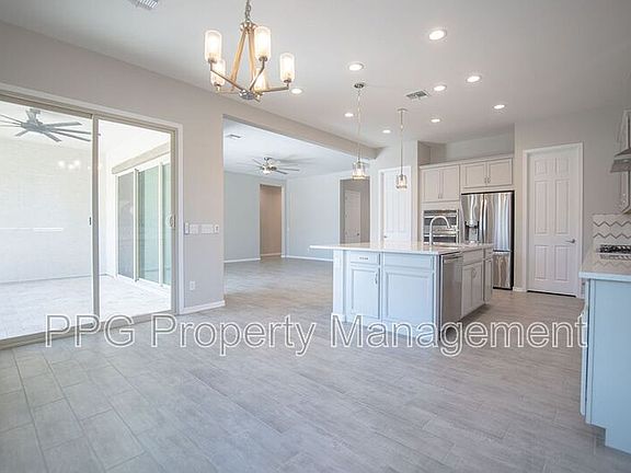 Beautiful 3-Bed, 3-Bath Home with Pool, Solar and Internet included. Welcome to your dream rental in the heart of Estrella! This spacious and modern home offers comfort, style, and functionalityperfect for families or professionals seeking a high-quality living experience. Inside, enjoy 9-foot ceilings and an open-concept living space featuring a stunning kitchen with quartz countertops, a stylish tile backsplash, two pantries, and a large kitchen island ideal for cooking and entertaining. Stainless steel appliances include a fridge, microwave, dishwasher, and gas stove and water softener. Each bedroom includes a walk-in closet, and the bathrooms are designed for convenience and luxury, with double sinks, a separate toilet room, and modern finishes throughout. Step outside to your private backyard oasis, complete with low-maintenance turf and a sparkling swimming poolperfect for enjoying Arizona's sunny weather year-round. Mountain views and hiking trails right off your front porch. Prime location in Goodyear near shopping, dining, and major freeways. Don't miss out on this beautiful homeit won't last long!