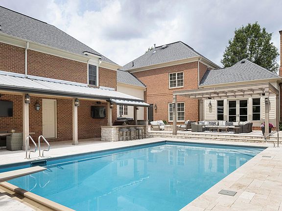 The newly constructed entertainment barn is a true showstopper—complete with a full indoor basketball/pickleball court, kitchen, half bath, and a lofted lounge area ideal for guests or gatherings. A beautifully landscaped backyard featuring a pool with automatic cover, hot tub, covered patio with pergola, outdoor fireplace, brick pizza oven, fire pit, full outdoor grill station, projector screen, in-ground trampoline, and a turf play space.