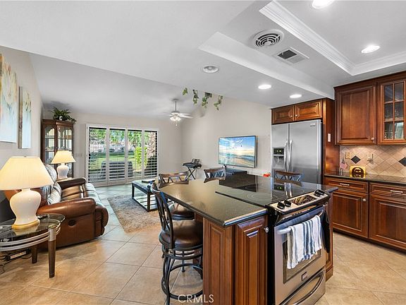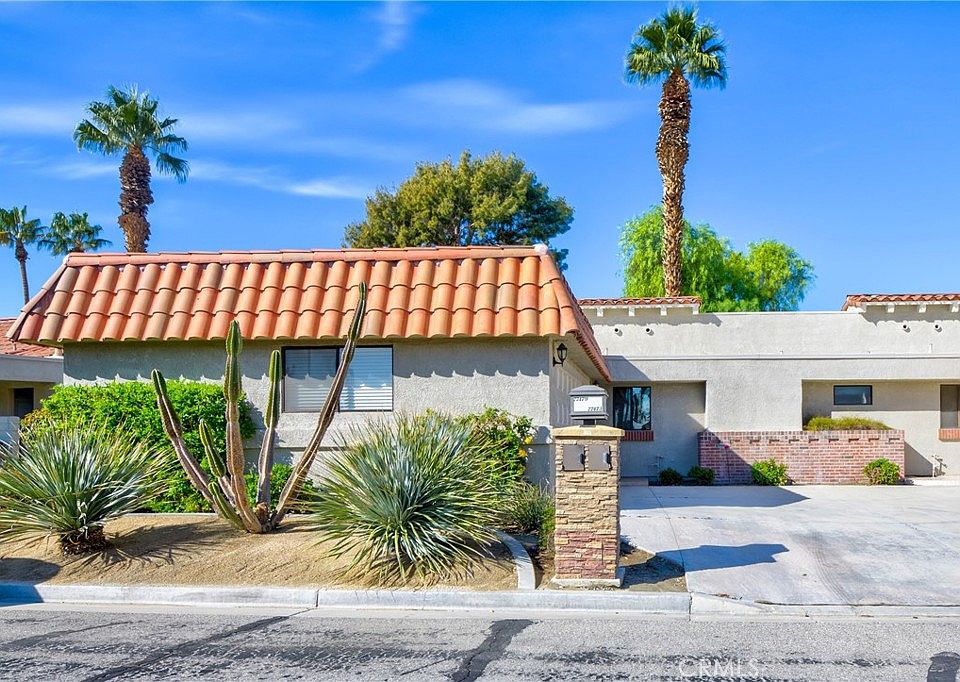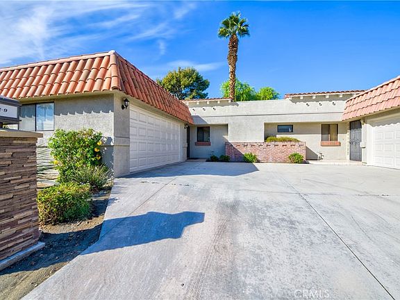 GORGEOUS! upgraded Olympic model located in Palm Desert Resort Country Club, just steps from the pool and spa with relaxing greenbelt and mountain-view surroundings. This beautifully maintained home features an open and bright floor plan with high ceilings, recessed lighting, and large slider that bring in natural light and views of the landscaped grounds. The upgraded kitchen includes granite slab countertops, a spacious center island with cooktop and seating, stainless steel appliances, custom cabinetry with glass inlays, and a warm tile backsplash. The kitchen opens directly to the Great Room, creating a seamless space for dining and entertaining. Tile flooring runs throughout the home with large ceramic tiles laid on the diagonal for a stylish and low-maintenance finish. The split-bedroom floor plan offers excellent privacy. Both bedrooms are spacious with mirrored wardrobe closets. The bathrooms include granite countertops, upgraded fixtures, and tiled walk-in showers. Additional interior features include a newer high-quality water heater and a recently added washer and dryer located in the attached garage. Outdoor living is highlighted by the private back patio with stamped concrete, mature desert landscaping, and wide greenbelt views. A spacious attached garage provides extra storage. Palm Desert Resort C.C. is a guard-gated community offering an 18-hole golf course, lighted tennis and pickleball courts, over 20 pools and spas, and a clubhouse with dining, lounge, and golf shop. The HOA maintains exterior landscaping. This home is ideal for full-time living, seasonal enjoyment, or investment opportunities. Your desert retreat awaits!
