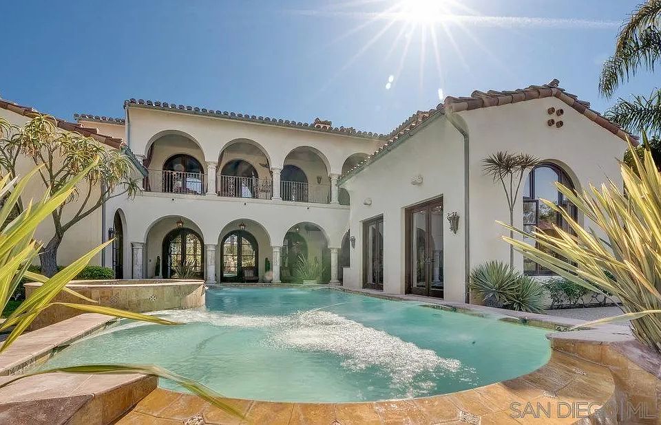 Feel like you're on a permanent vacation in this stunning custom estate located in the guard gated community of The Crosby at Rancho Santa Fe. Tucked away at the end of a quiet cul-de-sac on one of the community's most coveted flat lots, this home offers breathtaking panoramic views of the golf course. One of the very few homes with a private gated path providing direct access to the fairway. A long, secluded driveway welcomes you with a charming fountain, setting the tone for the elegance within. Inside, you'll find exquisite custom woodwork and ultra-high-end finishes throughout. The main living spaces open to spectacular views through expansive glass doors behind the family and dining rooms, blending indoor and outdoor living effortlessly. Cozy up by one of the oversized fireplaces, or entertain in style with a gourmet chef’s kitchen featuring top-of-the-line stainless steel appliances and an adjacent informal dining area. The main level also includes a generous ensuite bedroom and an impressive office that opens onto a tranquil courtyard. Upstairs, the luxurious primary retreat boasts its own private balcony with sweeping views of the entire property and golf course. An additional ensuite bedroom and a versatile loft complete the upper level. The backyard is an entertainer's paradise, showcasing a stunning architecturally designed pool that perfectly frames the custom home beyond. A separate guest house with a full bath offers comfort and privacy for visitors. To top it all off, there are two 2-car garages. Conveniently located near shopping and restaurants.