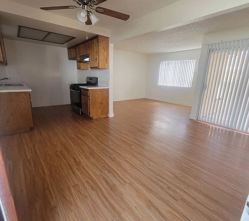 New window coveringsFresh paintSmall patio areaNew quartz counter topsNew ceiling fanNew stainless steel stoveNew vinyl laminate flooring