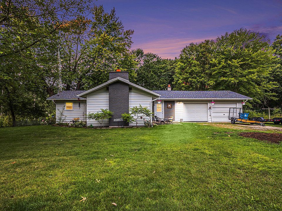 Charming country home on 12 acres just north of Big Star and the Chain of Lakes! This 2-bedroom, 1-bath home features a spacious mudroom, an attached 3-car garage, a basement, and an open floor plan. Recent updates include new windows, roof, gutters, tile shower, water heater, and a pellet stove. The living room pellet stove complements the forced air and AC system. Outside, enjoy a 24x50 garden, 2 sheds, 2 chicken coops, and ample space for hunting on your own land. Don't let this one slip away!