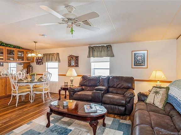 Fantastic 2 bedroom, 2 bath home in Ridgeway. All ages community, you own the land! Side porch is screened. 5 minutes to Hobe Sound Beach. Extra space on left side for your camper or boat. New beautiful vinyl floors, new appliances. No HOA. You can join the pool, clubhouse for $350. per year.