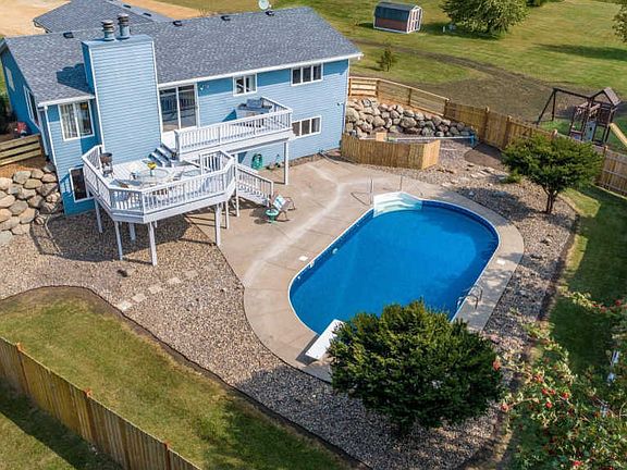 Beautiful, move in ready 3 bd/3 ba home offers all the amenities that youâve been looking for! This 4.85 acre lot is surrounded by privacy and a scenic country setting just minutes from I-94. The open kitchen, dining area and living room provide plenty of space for family gatherings and entertaining. The dining area opens to the large double tier deck which overlooks the backyard and pool area providing the perfect spot to relax. Outside youâll find a 45x35 pole building with cement floor for all of your toys!