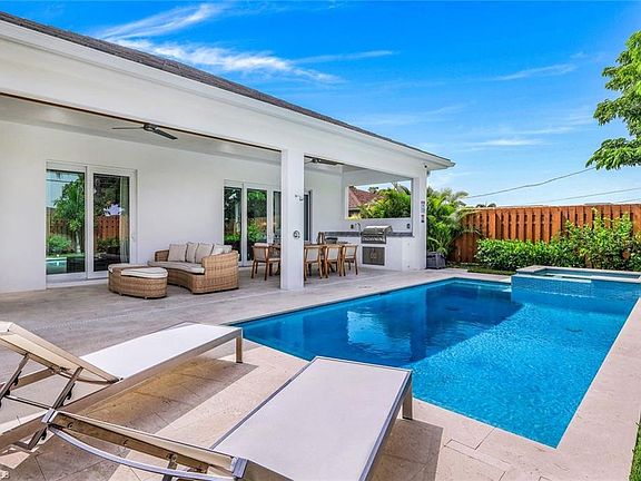 INVESTORS TAKE NOTICE: Proven rental history with upcoming rentals in place, if desired. Introducing this stunning, move in ready, newer construction home in Naples Park! Built by Naples Luxury Builders, a leading name in the Vanderbilt Beach area, this exquisite four-bedroom, three-bathroom residence is designed for luxury living and is being sold turnkey. Featuring impressive 11 and 12-foot ceilings, an open-concept layout, and elegant wide plank wood flooring, this home is a true masterpiece. Enjoy high-end finishes and upgrades throughout, including a stylish dry bar and a spacious outdoor living area complete with a summer kitchen. The resort-style saltwater pool and spa provide the perfect retreat, while hurricane impact doors and windows ensure safety and peace of mind. The bright and airy kitchen boasts beautiful solid surface countertops, upscale cabinetry, a gas range, and stainless steel appliances, making it a chef's dream. Step into the backyard oasis, where the pool, spa, outdoor kitchen, and fireplace embody the ultimate Florida lifestyle. The home is being sold turnkey and also has built in Sonos speakers and finished closets in every room. Located conveniently in Naples Park, this home is just a short walk to the Mercato, minutes away from the Waterside Shops, and only a quick drive to the vibrant downtown areas of 3rd Street South and 5th Avenue South. Don’t miss the opportunity to make this luxurious residence your own!
