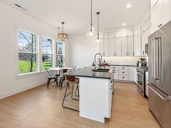 Discover modern living on the Robert Trent Jones Eagle Point Golf Course. Nestled within a gated community, our brand-new townhomes offer an unparalleled lifestyle, complete with amenities such as a pickleball court, swimming pool, dog park, and club house. This home features an open floor plan, 3 bedrooms, 2.5 bathrooms, 1615 sq ft, 10' ceilings on the bottom floor, 9' ceilings on the top floor laminate floors, great storage space and tankless hot water heater. Gourmet kitchen has island eating bar, quartz counters, gas range/oven, stainless appliances & abundant soft close cabinetry. The primary bedroom offers beautiful views and large walk-in closet, attached bathroom with dual sinks, large tiled shower, and tile floors and private toilet. Spacious guest bedrooms. Large, finished 2 car garage, covered back patio. Taxes are not yet determined. Possible option to add an elevator for an additional upgrade cost. These photos are for illustration purposes only. Call for information.