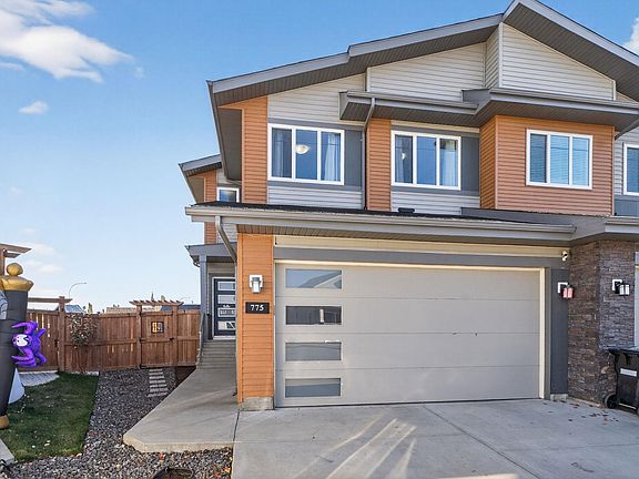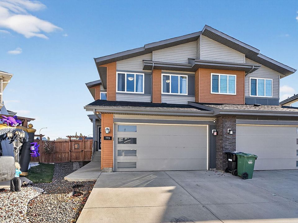 Welcome to this beautifully maintained half duplex in the family-friendly community of Blackstone! Offering a thoughtfully designed living space, this home truly shows pride of ownership. The bright and open main floor features a welcoming layout with a walkthrough pantry leading to a stunning kitchen with granite countertops and newer stainless steel appliances. The living room is highlighted by a shiplap feature wall with a ceramic tile fireplace and large windows that fill the space with natural light while overlooking the backyard. Step outside to enjoy a large pie-shaped, fully fenced, and beautifully landscaped yard—complete with a deck, fire pit, and charming wooden playhouse, perfect for summer entertaining. Upstairs, you’ll find a spacious primary suite with a luxurious 5-piece ensuite and walk-in closet. A cozy bonus room, convenient upstairs laundry, and two additional bedrooms with a 4-piece bathroom complete the upper level. Additional features include a double attached garage and A/C (2024)