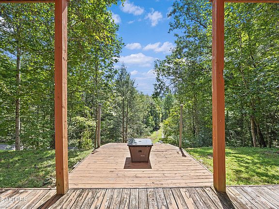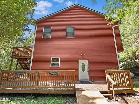 Welcome to a private mountain retreat with MOUNTAIN VIEWS on over 5 acres in the foothills of the Smokies. With 3,000+ sq. ft that is all handicap accessible, soaring 10-foot ceilings, and a double sided stone fireplace centerpiece, this home offers the perfect mix of space, comfort, and potential—whether for full-time living, a family getaway, or a short-term rental investment. Inside, you'll find an open floor plan filled with natural light, rustic wood finishes, and custom tile flooring. The kitchen features a breakfast bar with gas stove and abundant cabinet space, opening to a dining area ideal for entertaining. Multiple living spaces provide flexibility, including a cozy lounge and a game room large enough for a pool table, theater, or gym. Upstairs, private balconies extend from the bedrooms with peaceful wooded views. Outside, a sprawling deck with a firepit, also plumbed and wired for a hot tub, offers the perfect spot for gatherings, while the acreage provides privacy and ROOM TO EXPAND FOR FUTURE DEVELOPMENT. This property comes equipped with a large generator, brand new roof and siding, top of the line water softening system, 100% handicap accessibility, LOTS OF WILDLIFE, VA assumable loan, and babbling creek on the backside of the property. Just minutes from Gatlinburg, Pigeon Forge, and the Smoky Mountain National Park, 775 Boyd Way blends seclusion with convenience—an opportunity you don't want to miss.