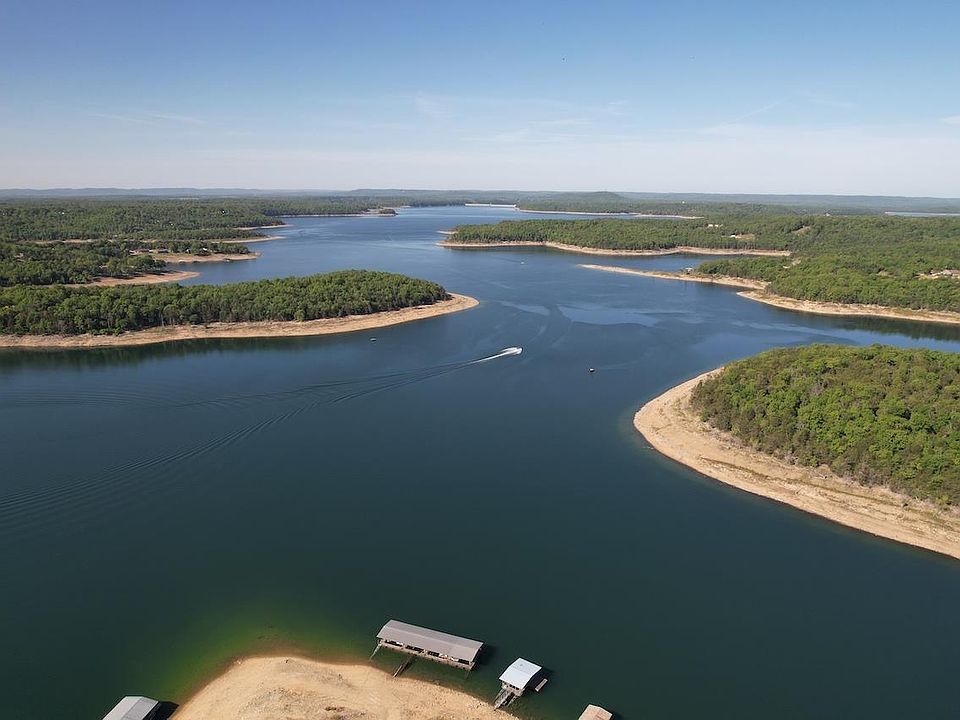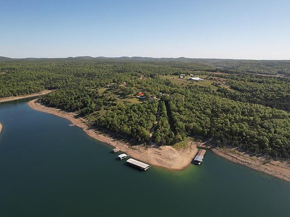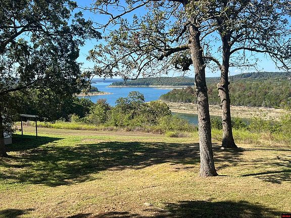 Cabin Overlooking miles of Bull Shoals Lake. This 2 bedroom cabin has a new roof with vinyl siding and shutters, fresh paint inside with luxury vinyl plank flooring throughout. There are 2 electric heat pumps providing heat and AC plus a ventless propane wall heater. The kitchen has custom tile back splash and includes the propane cooktop, toaster oven, refrigerator and built-in microwave. Walk-in Shower in bathroom with new tile surround. Both bedrooms are nice sized, the guest bedroom has a washer/dryer combination unit which is also included. Covered back deck has an awesome view of Bull Shoals Lake as does the entire back yard. Former resort now a private community, privately owned cabins with common ground where the lifestyle has been protected by a set of Covenants and Restrictions. $50 monthly dues cover yard mowing, tree trimming and other common ground needs. There is water access at the end of the road approximately 250 yards and a common area for parking of trailers, etc.