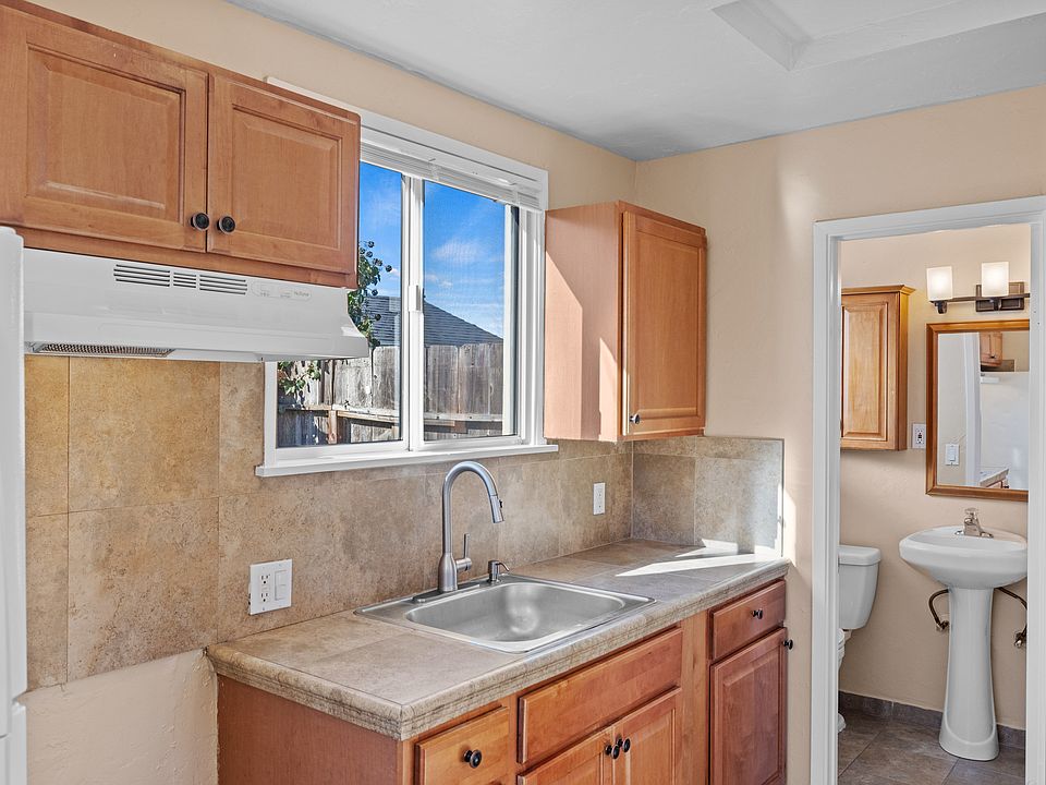 When you walk into the house you walk into an open studio with new cabinets, appliances, and fixtures.