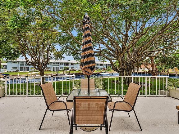 This beautiful East of US-1 unit features a water view with access to the Intracoastal and Ocean, no fixed bridges. Rare first floor unit with exclusive walk out area, with boat dockage available once you get on the list. Up to 25-foot boat. Awesome west view of canal, with mature trees canopy in a very desirable neighborhood to call home. 2025 New A/C unit. French Village sits on seven acres and features a serene walking path were you can watch the boats go past or gaze at luxury homes. Equidistant to Ft Lauderdale and Palm Beach airports. Close to Boca Raton and Delray Beach downtown areas, for the best of both worlds. 1 bedroom and 1.5 baths. Tiled living areas, carpeted bedroom. Extra storage, garage parking with convenient elevator access. Just completely renovated pool.