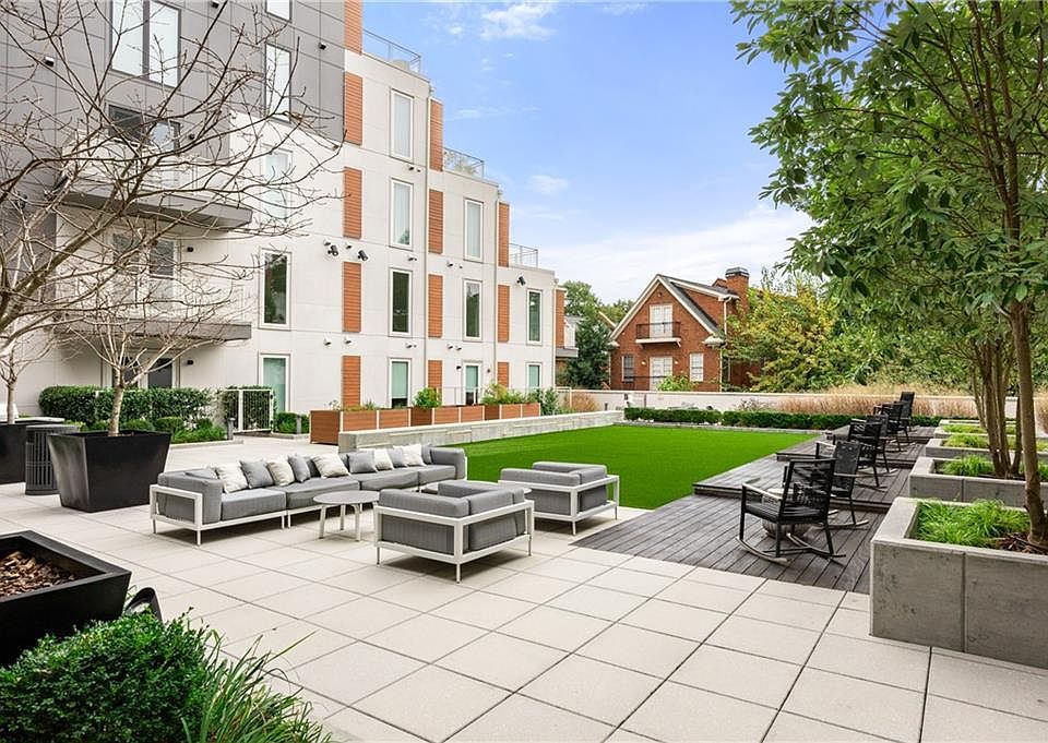 One of only a handful of homes offering a spacious private outdoor terrace, this property invites you to enjoy a unique opportunity to enjoy elevated living both inside and out. Your personal garden-style escape is large enough to accommodate a variety of entertaining configurations and enjoys charming, tucked-away views that feel more European village than city center. Nestled within Midtown’s boutique J5 building, Residence #230 is a rarely lived-in two-bedroom, two-bath home that perfectly blends luxury, comfort, and ease. Inside, the home’s open layout flows effortlessly between the kitchen, living, and dining spaces, framed by expansive windows that fill the rooms with soft natural light. Thoughtfully appointed with sleek modern cabinetry, quartz countertops, stainless steel appliances, and wide-plank hardwood flooring, every detail contributes to a sense of quiet sophistication. You’ll also find the modern comforts and thoughtful touches you expect from newer construction — generous closets, beautifully appointed bathrooms with designer fixtures, and an overall emphasis on clean lines and livable luxury. Adding ease to daily living, two prime parking spaces are located just a flight of stairs away in the building’s secure, gated garage, providing both convenience and peace of mind. The resort-style saltwater pool, state-of-the-art fitness center, and clubroom offering daily coffee service are located on the same floor, making one-level condo living a reality. Other lifestyle amenities include — a 24-hour concierge, a firepit, multiple outdoor grilling areas, and a dog park — all just moments from Piedmont Park, the BeltLine, and Midtown’s best dining and shopping. Here, city living feels peaceful and intentional, offering a tranquil retreat in the heart of it all.
