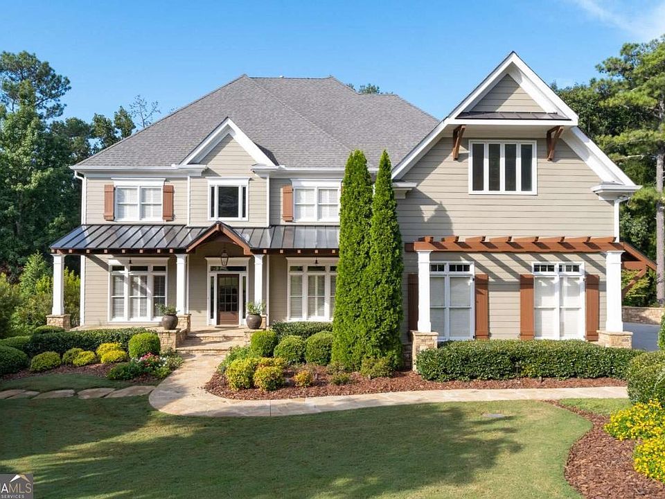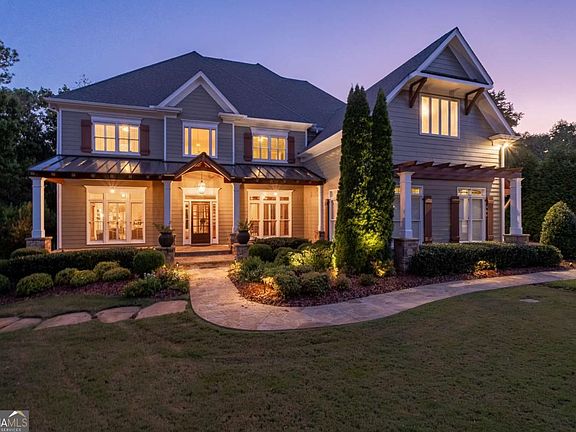 Are you seeking a beautifully crafted, quiet, and secure retreat in a prestigious Milton neighborhood? Welcome to Providence at Atlanta National, one of Milton's most desirable gated communities and among the few with staffed, on-site security. Set on 1.63 serene, wooded acres with no road noise, this timeless residence offers exceptional privacy, quality construction, and exquisite craftsmanship inside and out. A stately stone walkway leads to the impressive covered front porch with flagstone floors, opening to light-filled living spaces where wood, stone, and fine materials converge. The oversized two-story great room features soaring windows, a marble fireplace, and seamless flow to the kitchen, sunroom, dining room, office, and main-level guest suite. The gourmet kitchen offers high-end appliances, a large island, white quartz countertops, marble backsplash, and a sunny breakfast alcove, plus a cozy keeping room with stone fireplace. Upstairs, the primary suite is a private sanctuary with a renovated spa-style bath featuring barrel ceilings, stone tilework, dual walk-in closets, and dual linen closets. Three additional upstairs bedrooms enjoy peaceful views and en suite or Jack-and-Jill baths. The expansive terrace level offers exceptional versatility, making it ideal for multi-generational living with its large open spaces, full bathroom, sunroom, covered deck, and private exterior entry. This level easily supports the addition of a full kitchen, and the sound-insulated room is perfect for a future movie theatre, music or production studio, podcasting suite, or quiet office. Two sizable rooms could become additional bedrooms with simple closet additions or serve as a playroom, teen lounge, game or billiards room, workout or yoga studio, craft space, or guest suite. Two levels of sunrooms are a standout feature-bright, private, and wrapped in wooded views-ideal for morning coffee, reading, painting, or indoor gardening. Multiple outdoor living spaces overlook lush, wooded privacy with room to create a level lawn or future pool site; prior pool plans were approved. The property is supported by septic systems for up to 10 bedrooms and recently received a clearance letter. Enjoy Milton's highly ranked schools (Hembree Springs ES, Northwestern MS, Milton HS) and famous equestrian setting, while remaining close to Crabapple, Alpharetta, Windward, North Point, Avalon, Halcyon, downtown Cumming, and GA 400. Parks, trails, country clubs, and golf courses surround the area, offering endless recreation. This home is exceptionally clean, well-maintained, and combines premium location, superior craftsmanship, and unmatched flexibility for future customization. A $3,000 buyer credit is available through the preferred lender.