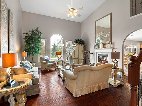 This is the one you’ve been waiting for! Welcome to 775 N Admirals Pointe Dr, an incredible, custom home in the highly sought-after Raineybrook subdivision that offers 6 bedrooms, 4 and a half bathrooms, and nearly 4700 square feet of living space. Upon entry, buyers will love the soaring vaulted ceilings, high end finishes, and meticulous attention to detail that make this home truly special. The main floor features a warm and inviting living area with elegant touches like archway openings, engineered hardwood floors, and a doubled sided gas fireplace that leads to the gourmet kitchen. Outfitted with beautiful cabinetry, stainless appliances, granite countertops, and a large island, this kitchen is designed for both entertaining and everyday living. The thoughtful design continues with a spacious sunroom that features vaulted ceilings and windows on every wall that flood the space with gorgeous, natural light. Step into the formal dining room, where the wonderful craftsmanship is on full display. Complete with tray ceilings, crown molding, and decorative lighting, this room is sure to wow. Additional amenities on the main floor include an indoor speaker system and an oversized laundry room that provides a utility sink along with tons of storage. And best of all, the home features a massive, primary suite on the main floor! This wonderfully laid out area includes not one, but two 5’x8’ closets, and a huge 12’x13’ bathroom that boasts a walk-in tiled shower, jacuzzi soaking tub, and dual vanities with separate sinks. Head upstairs, where you’ll find 4 additional bedrooms and a unique layout that includes 2 additional bathrooms! Below grade lies another standout feature of this home - the fully finished basement! Featuring a massive, open-concept layout, this area includes a 6th bedroom with en suite bathroom, media space, workout room, and a beautifully crafted wet bar that comes with coordinating bars stools, dishwasher, and refrigerator/freezer, making it the perfect spot for game nights or casual evenings in. All windows in the home have custom blinds and an active security system with ADT is installed. Finally, one of the true highlights of this luxurious property is the personal retreat found outside the home. Complete with full yard irrigation and lush landscaping, a sparkling in ground pool with electric cover, grilling station with dedicated gas line and stone backsplash, outdoor speaker system, and multiple lounging areas, this backyard oasis is re