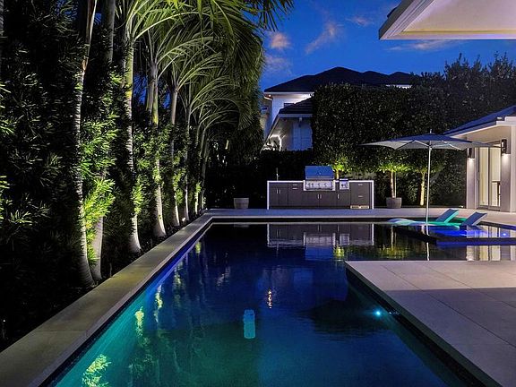 Situated on a private peninsula in the prestigious Lake Rogers neighborhood, this refined waterfront home has all the bells & whistles. A dramatic entrance flanked by Medjool Date Palms features Italian porcelain driveways. High-end landscape & lighting all on smart controls. Expansive loggia leads to 50' saltwater lap pool w/sunshelf & spa. Outdoor kitchen w/Lapitec waterfall countertop. New 94' of seawall cap overpour plus (9)x12''x20' pre-stressed concrete dock piles & new 4'x75' concrete dock. A quick boat ride to Boca Inlet, a true boaters dream. Entire home has new plumbing, natural gas tankless water heater, Toto wall hung toilets, high-end plumbing fixtures, Wolf/SubZero appliances, Calcutta Gold quartz, whole house generator...much more listed on feature sheet! It's perfection!
