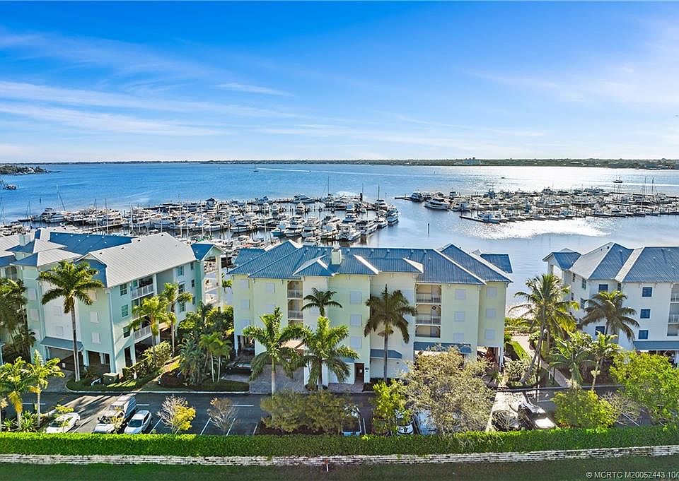 Highly sought after 3-bedroom, 2 bath condos in Harborage Yacht Club with wide water views of the St. Lucie River and just minutes to the inlet. This open floor plan has a wraparound porch that overlooks the marina and downtown Stuart. Kitchen features wood cabinets, granite countertops and wine cooler. Brand new furnishings have just been added to the unit. Third bedroom could be a beautiful office area as well. Amenities include a state-of-art fitness center, saunas, 2 heated pools, hot tub, poolside cafe and Yacht Club dining room for members only and a public restaurant onsite Tidewaters. Security gate to the building as well. Wet slips to accommodate up to 100' yachts. There is a one-time Yacht Club membership fee of $!0,000 (refundable upon selling the unit). Great location, overlooking downtown Stuart from across the river and you can take the water taxi and/or walk, ride a bike over to downtown to enjoy the fabulous restaurants, boutique shops and the farmer's market.