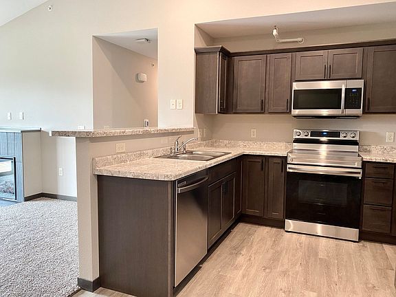 Spacious 2 bed 2 bath upper unit. This unit includes stainless steel appliances, washer & dryer, a fireplace, central air, vaulted ceilings, private balcony, 1 car attached garage. And managed wifi. Enjoy convenient living with easy access to WI-35, WI-65, and UW- River Falls. Wildflower nature trail close by. Lawncare & Snow removal included. Pets would be considered with monthly pet rent. Restrictions on breeds apply. Limit of 2 pets.