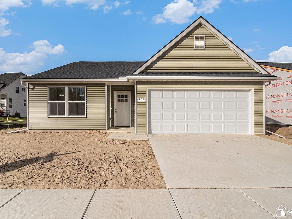 BEING BUILT with a Jan. 2026 Completion! NEW CONSTRUCTION at its BEST! Get ready to 'COME HOME HAPPY' in popular Uptown Village!! We present to you the ''Oasis'', a 1466sqft. Ranch offering 3 Bedrooms, 2 Baths, Full Basement w/Egress, and 2 Car Garage. Built for comfort, a spacious light-filled Kitchen w/Pantry, Upgraded Maddie White Cabinets, SS Appliances, Granite Countertops, 8 ft. Island and an open Nook w/DW. A Great Room with Cathedral ceiling and a Primary Suite w/walk-in Closet and Bath will surely bring a smile! Quality construction throughout incl. 30 Year Dimensional Shingles, Jeld-Wen Vinyl Windows, Maintenance-free Vinyl Siding/Soffits/Gutters, High Efficiency Mechanicals, A/C and a Concrete Drive. No Construction Loan Required-One Year Builder Warranty. Get ready to Move into your Dream Home!!!