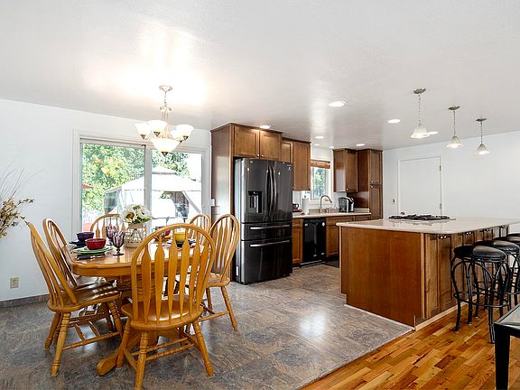 Desirable established Neighborhood, Stunning turn key remodeled home. Owner removed Dividing wall between Kitchen & living room to give it a spacious feeling. Large 8' center Island W/ Down draft Jenn-Air stove, New Cabinets, Corian counter tops, Lots of recessed lights in kitchen & dining room, original hardwood floors through out living room and all bedrooms sanded down & restored back to like new. 400 sqft Primary bedroom w 2nd Laundry room & 2 exterior entrances, one goes out to private 700 sqft covered and stamped concrete back yard patio. Large multispace gated RV parking, Front and Back, Smart apps for programmable thermostats, garage door, sprinkler system, outdoor lighting. Have a great time in this 500 sqft Gargage with it's own fireplace. Owners used it for kids game room. New stamped concrete Driveway & front porch space. All fenced back yard, large enough for pool and a huge shop.