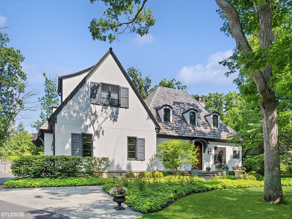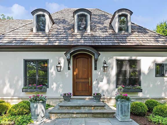 Constructed in 2013, this exquisitely designed French Provincial-style residence showcases meticulous craftsmanship evident in its selection of materials and intricate details. The main floor boasts a grand living room distinguished by a soaring vaulted and beamed ceiling, complemented by a stone surround fireplace, rich Walnut flooring, and gracefully arched French doors that lead to a private bluestone patio. Further enhancing the first floor is a bespoke home office complete with custom built-ins, a kitchen featuring top-tier custom cabinetry and high-end appliances, including a La Cornue range. The kitchen opens to a cozy sunroom/sitting area with a fireplace and stone flooring and overlooks the delightful backyard. The first-floor primary suite also features an impressive vaulted and beamed ceiling and boasts a stunning ensuite bathroom with both a stand-alone tub and a walk-in shower. Ascending to the second level, two private suites await, each characterized by vaulted ceilings and luxurious en-suite bathrooms. The basement level is equally compelling, with high ceilings, a large family room with a gas fireplace, space for recreational activities, a fitness room, a fourth bedroom accompanied by a full bathroom, and ample storage capacity. Facilitating a seamless transition between indoor and outdoor living, the numerous French doors on the main level allow the interior spaces to gracefully spill out into the professionally landscaped yard, a tranquil haven of serenity. The outdoor setting is complemented by a bluestone patio, creating an idyllic setting for both entertaining and family relaxation. Other noteworthy conveniences include the first-floor laundry room and the three-car heated garage, and elevator ready. This residence is the embodiment of true splendor and an opportunity not to be missed!
