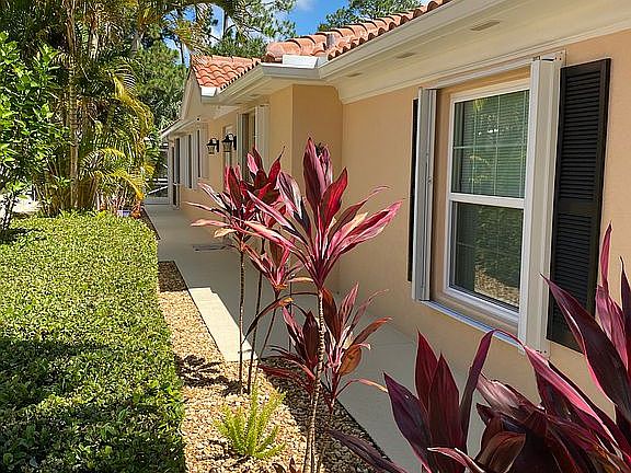 Welcome viewers, I hope you are healthy & safe! Updated furnished 2/2/2 Divosta Capri villa. NEW TILE ROOF (2021), extended, covered & screened lanai. New screen in 2020. ALL NEW IMPACT WINDOWS including 12’ slider(2021), accordion hurricane shutters. Hurricane rated full view front door. Bathrooms have been remodeled including QUARTZ countertops and frameless shower doors. Kitchen has granite countertops and cabinet pull-outs in most cabinets. Bedrooms have walk in closets. Plantation shutters throughout home, new A/C in 2019. Newer hot water tank, Crown moulding throughout, porcelain tile throughout except bedrooms are carpeted. Central vacuum system. Professionally landscaped. Exterior newly painted, all new gutters and LED soffit accent lighting. Wi-Fi lighting controls. Garden view overlooking the 16th Tee box, plenty of room to relax and entertain family & guests. Community pool and tennis courts. The Florida Club is a public golf course for ease to golf at your leisure. Monthly HOA fee includes Internet and HD cable.