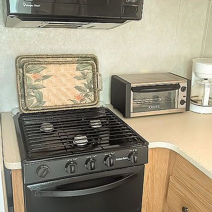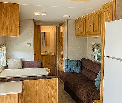 Sleeps six comfortably with a queen bed. A pull-out couch and bunks