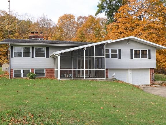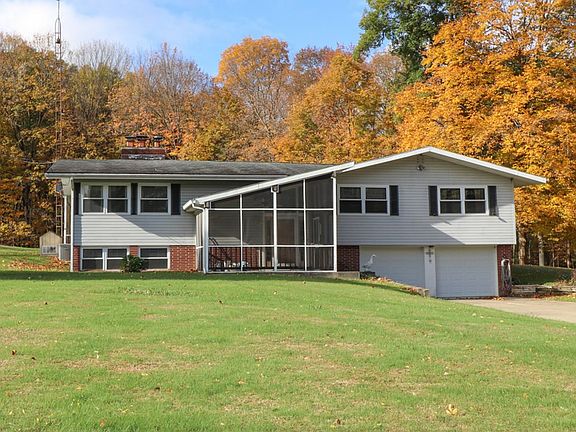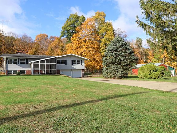 Nestled on a quiet cul-de-sac in the Madison School District, this home offers 4 bedrooms and 2 baths, nearly 1,800 sq ft of living space on just under 3 acres surrounded by peaceful woods, a creek, abundant wildlife and 2 outdoor buildings. Enjoy mornings on the covered front porch, evenings on the spacious back patio, or relax in the inviting four-season room. Inside, you'll find Amish-made cabinetry, updated flooring throughout, and a new hardwood staircase (2024). The finished rec room provides additional living and entertainment space. Recent updates include a new well pump, water softener, RO system, and new metal roof and siding on the red barn (2023) and more. Conveniently located near Route 30 and I-71, offering both ease of travel and the serenity of country living.