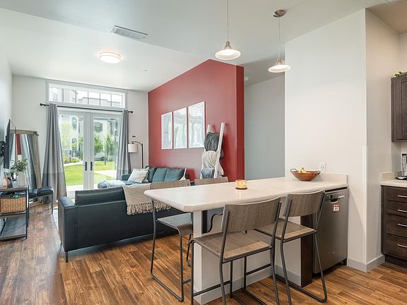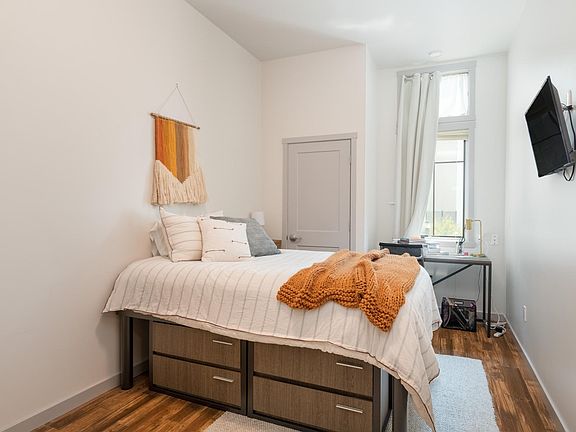 - Exterior features: Academic Center & Study Lounges, Availability 24 Hours, BBQ's, Barbecue, Bedrooms with Private Bathrooms, Bicycle storage, Building-wide Wireless, Business Center, Complimentary Coffee Bar, Conference Room, Courtyard, Electricity included in rent, Flat-Screen TV, Flexible Lease, Flooring: Laminate, Garbage included in rent, Gas included in rent, Heating included in rent, High-speed Internet Ready, Hot water included in rent, Individual Leases, Internet included in rent, Lawn, Mind-Body Fitness Studio, On-Site Management, On-Site Manager and Community Assistants, One Year Lease, Online Maintenance Portal, Online Rent Payment, Package Receiving, Pet Friendly, Picnic Area, Programmed Community Events, Reserved parking options available in the secured underground parking garage. Free off street parking available., Sewage included in rent, Ski and Bike Tune-Up Stations, Slack Line, TV Lounge, Underground Parking, Vending Machines, View Type: City, View Type: Mountain, Water Feature, Water included in rent