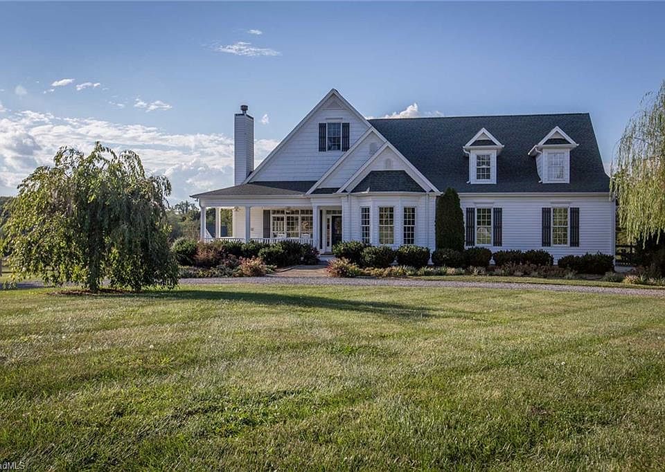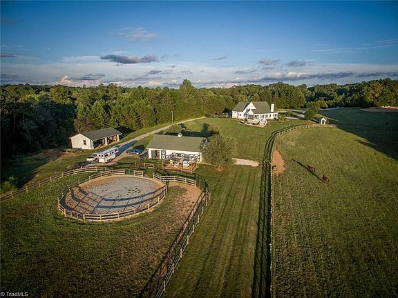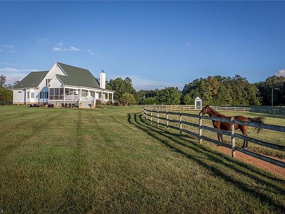 Welcome to Fox Spring Farm- a spectacular nearly 60 acre estate! Within 30 minutes of W-S, Greensboro & High Point. 6 stall horse barn w/tack room/feed room. 3 board fenced pastures, stocked spring fed pond & groomed trails winding through the fields, woods & around the pond. Farm house style home w/open floor plan, wrap around deck & screened porch sits perfectly on the lot for stunning views in each direction. Main level master. Lots of natural light throughout! Very private location.