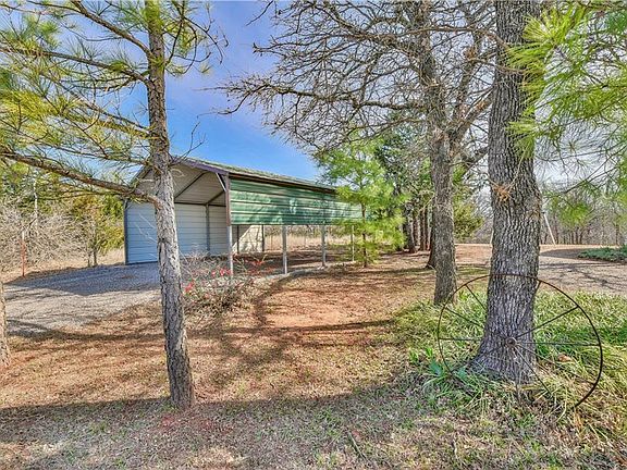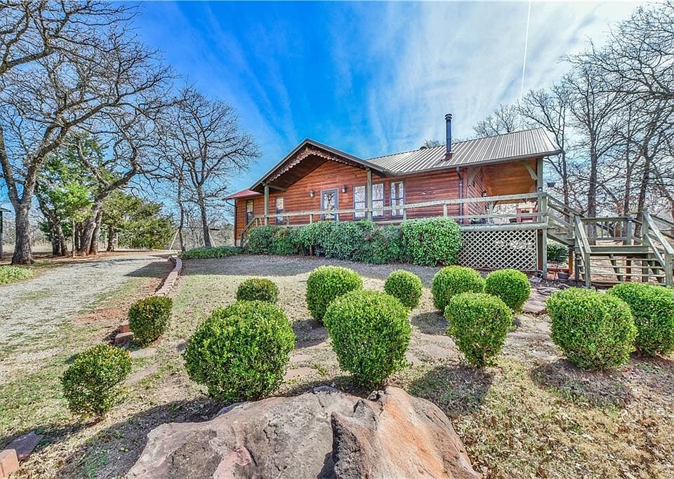 Beautiful, gated, log home on a well laid out acreage, just outside of the OKC metro. Do not miss out on your opportunity to check out this home. This pleasantly secluded property has 1 carport, 1 RV port, a 24x30 shop building, shed, chicken coop, and plenty of wooded and clear acreage! With a new HVAC, metal roof, and new appliances, this home is nearly carefree. Ready for you to enjoy an evening alone or with a dozen your closest friends or family. Experience this home in person!! Call now for private showing!!!