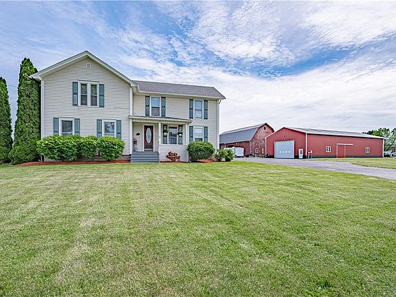 Too much to say about this 3200 square foot 4/5 bdrm 3 bath farmhouse on over ten acres. Updates galore, some include: roofs, kitchen, HWT, bathroom, electric, windows, the list goes on. Sellers restored and reinstalled original wide trim over fresh wallboard and insulation. All appliances in gorgeous kitchen included. Home has central AC, a quaint sunroom, first floor laundry, bedroom or office. Large rooms. Store sized blacktop parking with two outbuildings. One older barn for any horse or animal lover. A 40x100 steel full foundation building with 20 foot door, 200 amp electric and motor coach hookups. The opportunities are endless. Possible commercial, storage, home business, or car lovers paradise. 2021-07-02