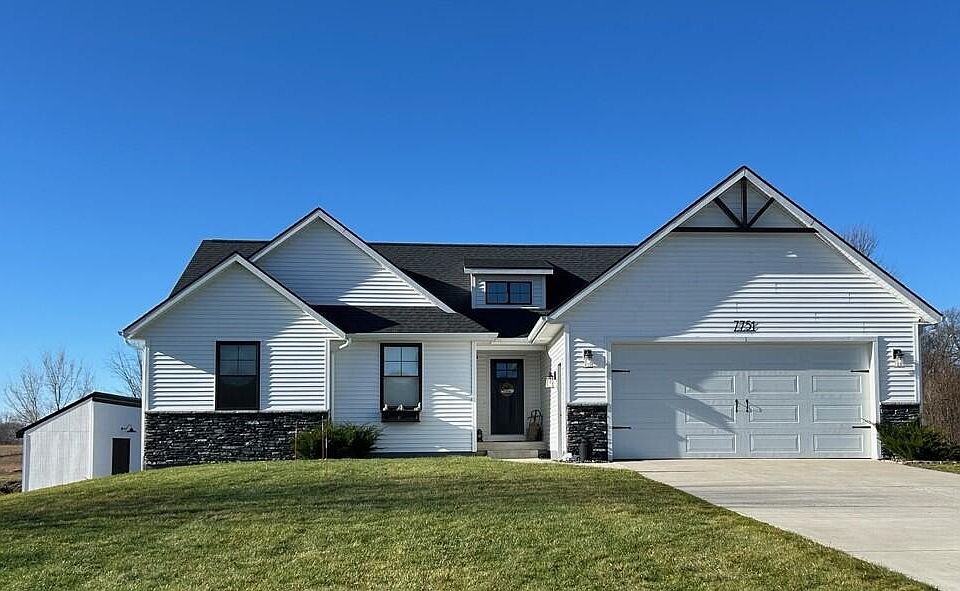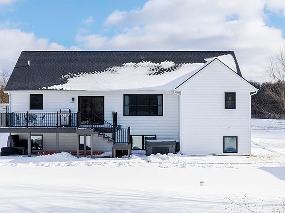 Come tour this ready to move into 5 bedroom 3 ½ bath completely finished daylight ranch on a spacious 1.63 acres. Like the new home building trends of the last few years, this beautiful custom built home boasts a white kitchen with large island and subway tile backsplash. The interior of warmer tones throughout will not disappoint in this 3 bed main floor home. LVP flooring combined with carpet up and down. Classic white exterior with stone accent. An adorable shed dormer highlights the roof. Extra large composite deck overlooks the acre of backyard. 2 bedrooms, huge family room, full bath and bonus work out area complete the LL. Bonus room could be a sixth bedroom option. Many Extras come with this open floor plan home. Custom built 16'' lockers with soft close doors in the mud room and closet shelves throughout. Cedar ceiling in the front porch entry. LL finishes are equal to the main floor. Full cement drive with turn around area and bball hoop. Garage is insulated and structured with osb walls. 2nd Electrical Panel in the garage provides quick access to hook up the generator. Also, there is a whole home surge protector in the panel. The back stairs take you to the hot-tub. Cement pad under the entire deck gives the owner a clean exterior storage area. Energy efficient rating certification. Solid safe and sound doors give the feeling of a well built house. Shed with power. Only 12 miles, mostly highway, to get to downtown GR, but you feel like you are out in the country. Open spaces and a quiet road await.