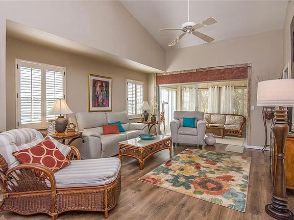 Lakeside of Naples is a gated low density community of only 396 residences in the heart of North Naples. This updated 2 bedroom 2 bath villa home with detached garage lives like a single family home with an open floor plan, vaulted ceilings and lots of windows making home light and bright. Create an office or den in the expansive open kitchen area or in the enclosed lanai which offers additional living space. Villa is immaculate boasting an impressive open concept floor plan with tile and laminate throughout, split bedroom floor plan and a private guest suite with pocket door and built-in closets. New A/C and roof in 2016 and newer appliances. Lakeside amenities include a 1.5 mile walking path, a 40 acre lake for fishing and canoeing, a two-story 'Olde Florida' clubhouse with two swimming pools, sauna, 5 clay tennis courts, weight room, kitchen facilities, library and game room, playground, shuffleboard/bocce and basketball courts. Only 2.5 miles from beaches and close to all shopping and dining, an A rated school district, lower HOA fees and a pet friendly community.