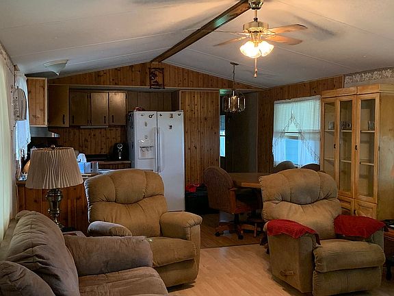 , Active 55+ Community, 60'x14', 2/2, Ctrl H/A, newer kitchen appliances, open kitchen, dining, and living room with wooden floors, recently renovated MASTER BATH , NEW FLOOR ,VANITY AND TOILET IN IN BOTH BATHS. Roof over w/ life time warranty, newer 8x20 raised screened porch w/ insulate roof, newer 8x10 shed, Carport, Clubhouse, HEATED POOL, shuffleboard, etc. Appliances and Ongoing renovations all within last 1-2 years including new 30 gallon hot water heater, Also central A/C with heat. Large Carport! for 2 cars. Pet friendly! (inquire) Beautiful landscaping, nice community with many activities in the clubhouse and pool area.