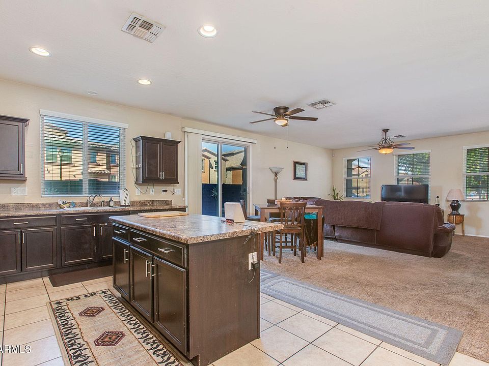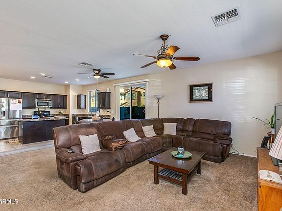 This stunning 3-bedroom, 2.5-bath home is situated in a vibrant community offering fantastic amenities, including a pool, spa, children's playground, multiple parks, basketball court, scenic walking and biking paths, and numerous shaded ramadas. Inside, you'll find an open floor plan perfect for entertaining, highlighted by a beautiful kitchen with a spacious island and stainless steel appliances. Upstairs, the oversized primary suite features a huge walk-in closet, private bath with dual vanity, soaking tub, walk-in shower, and separate toilet room. Two additional bedrooms, a full bathroom, and laundry room complete the upper level. Conveniently located near dining, shopping, and with easy freeway access, this home has it all!