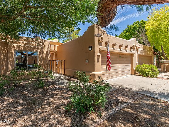 *RARE FIND!* Discover the serene ambiance of this 2 bed, 2 bath sanctuary in the coveted neighborhood of Villa Antaño! Enjoy a roomy 2-car garage, mature shade trees, & a welcoming courtyard for morning coffee. The open living room & formal dining areas feel grand with vaulted ceilings, exposed beams, a wet bar, & cozy fireplace perfect for entertaining! One of many skylights bring in ample natural light to the eat in kitchen with white shaker cabinets, & stainless steel appliances. The main bedroom offers direct patio access, 5 piece ensuite, & a walk-in closet. The guest bedroom is nice and roomy with a walk in closet & direct courtyard access. If you're looking for a home at a suitable price point in this prime Scottsdale location, come take a look at this SUPER SPECIAL ON SOLANO DR!!