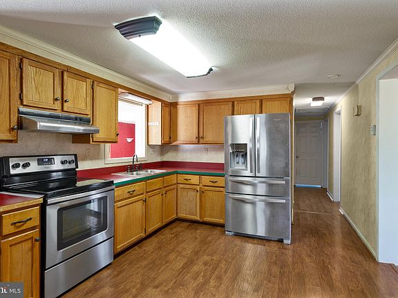 Well maintained 1-level rancher with a fully fenced backyard perfect for outdoor entertainment with a covered bar area and composite decking. Kitchen is outfitted with stainless steel appliances, a propane heater and flue for a wood stove, pass-through to the family room that is equipped with a propane corner fireplace and LVP flooring. Updated bath with 12x12 tile flooring, soaking tub/shower, update cabinets and linen closet. Bedrooms are outfitted with ceiling fans, wainscoting and coffered ceiling. Hallway laundry with washer and dryer that convey. Double hung windows replacement windows and LVP flooring throughout. Prefect for outdoor entertainment with a fully fenced rear yard with loads of composite decking, a covered bar, raised garden beds, 2 sheds with electric, and aluminum fencing already set up for an above-ground pool.