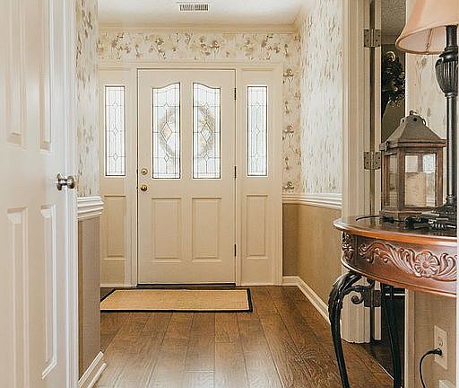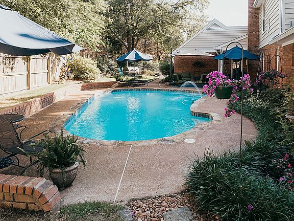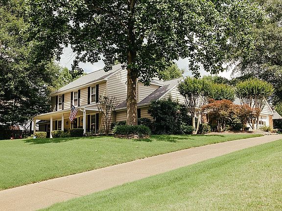 Beautifully landscaped, traditional 4 bedroom and 3 full bath home. Features, formal dining room, large kitchen, breakfast area with bay window, family room (w/gas log fireplace), living room/office. The master bedroom is on the main floor with completely updated master bath and his/her closets. The laundry room is conveniently located next to the master bedroom. Hardwood laminate flooring throughout first floor. Upstairs is carpeted and features 3 bedrooms and 1 full bath. A third bath is conveniently located near back entrance for pool access. The attached oversized garage has built-in work area. There are 2 walk-in attic storage areas accessible from within the house. Additional updates/improvements include new roof, insulated vinyl siding, leafless gutters, tankless water heater, new driveway, and custom backyard storage building. Pool has been re-gunited and new concrete decking. Extensive landscaping.