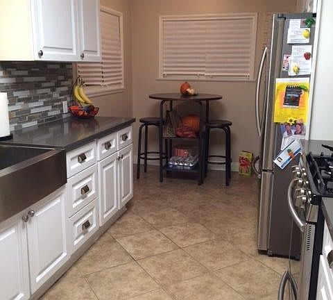 REDUCED Beautifully, upgraded, open floor plan home set back off street. Kitchen updated with tile floor, white cabinets w/large Farmer's sink, Quartz Counters, Mosaic Glass Backdrop. Stunning Wood laminated floors throughout. 2 closets in Master bedroom. Living room/dining room opens to the backyard through the sliding door..large lot 8,329 sq. ft., garage in rear off alley and possible RV parking. A must see!