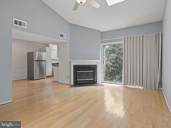 This charming 2-bedroom, 2-bathroom condo offers 945 sq. ft. of comfortable living space, The spacious living room features vaulted ceilings that create an open, airy atmosphere while the cozy wood-burning fireplace adds a touch of warmth and charm. The eat-in kitchen with stainless steel appliances provides a functional space for cooking and dining and the private balcony offers a peaceful retreat to enjoy the outdoors. Two generously sized bedrooms and 2 well-appointed updated bathrooms, as well as in-unit full size Washer & Dryer, this condo is an ideal combination of comfort and convenience, providing a perfect place to call home. This ideal location inside the beltway provides quick access to Mosaic District, Jefferson Park and I 95/50/66. Low condo fees with no pet restrictions, tennis court, Lake with walking path, dog park, playgrounds and pool (added fee). Plenty of parking for you and your guests!