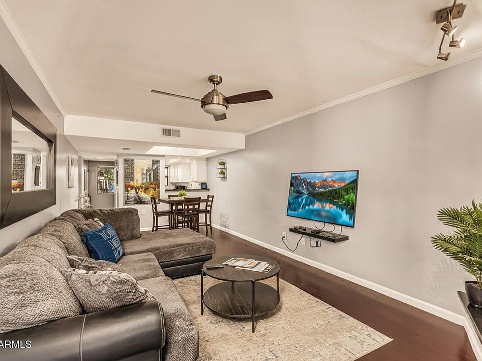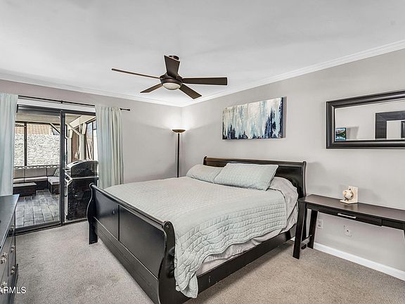 Cozy and modern townhome, in a perfect South Scottsdale location. Steps away from the Scottsdale Greenbelt and one mile from the heart of old town Scottsdale. It's a perfect home for young professionals, snowbirds looking to escape the Winters, or an investment property. The community is very quiet for South Scottsdale, since there are no short term rentals in the complex. Vacation rentals of 30 days or more are permitted. There is a true community feel at this complex. It is a 2 bedroom and 2 bath home, with a 300 SF enclosed patio in the backyard. A new 2.5 Ton Trane AC unit, a new silicone roof, and the dishwasher, refrigerator and Microwave were all installed in 2025. All of the furnishings, electronics, décor and rental supplies convey, if desired, making it truly turnkey. Everything you see in the home you get. The complex has an outdoor swimming pool and the complex borders the Scottsdale bike stop which offers 10 additional parking spots. All in all, this townhome is priced to sell and it will make a great home for the right individuals.