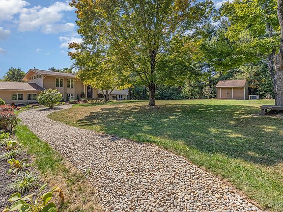 MUST SEE. Pictures DO NOT do justice to this 4/5 BR home. Main Fl w/beautiful FR,DR,Eat-In Kitchen w/walk-outs from Kitchen & Primary BR to deck (length of house) w/view of backyard & mature trees. Finished LL w/4 walk-outs, another spacious great room, workout room, & family rm w/WBFP & wet-bar,(ideal for in-law suite),laundry rm/w utility tub, full bathroom & storage area. Finished oversized garage w/workshop area w/220 electric. Freshly painted throughout, new laminate flooring, new carpet, up-dated bathrooms, kitchen, & light fixtures. This home is quite amazing & unique nestled on 5.73 acres w/rustic cabin w/electricity & fire pit, plus nice storage shed, creek & privacy. Move right in & enjoy your privacy, quiet mornings, fun gatherings & relish the joys of country living. Immediate Occupancy.