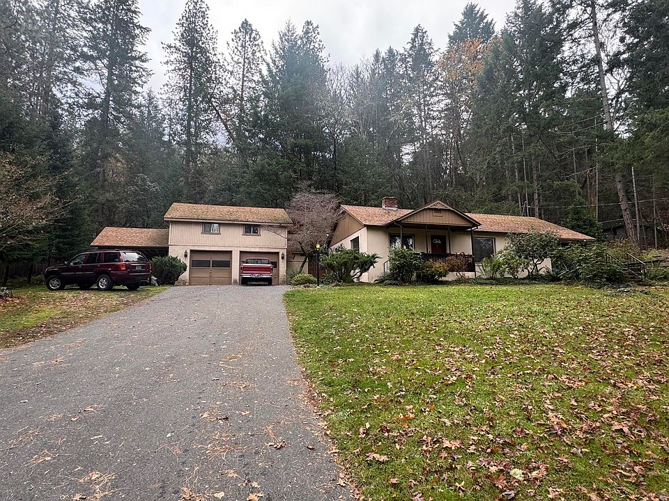 Wonderful 3 bedroom, 2 bath 1,502 SF home in Park Like setting across from the Rogue River. BRAND NEW SEPTIC INSTALLED. Property Includes 130 LF Direct River Access & small beach just across the road. Effective Remodel in 1970 added 3rd room & 2nd bathroom + patio access. Home boasts original tile & wood craftsmanship, brick fireplace, gorgeous Parquet Floors, solid wood cabinets & Oversized Canning/Laundry room. The 2-car garage has electrical in 110 & 220amps for many hobby configurations. Bonus room above has retractable stair access is set up as activity room & could be additional storage or Detached Living Space. Central HVAC installation with new ducting, works for recirculation of fireplace heat just needs heat pump. Home is conveniently located between Grants Pass & Rogue River. Expansive front yard with Mature Trees & a gentle slope create a serene feeling. Home is a touch dated yet Solid Condition Don't miss seeing this quiet beauty for your self