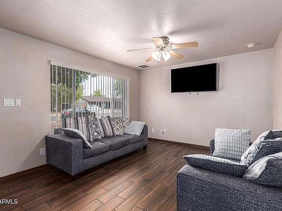Great opportunity to own this charming 3-bed.2, bath home. Featuring a 2-car garage, a well-maintained landscape & a cozy porch ideal for your morning coffee. The interior boasts abundant natural light, a neutral palette, and a taste of wood-look tile & carpet flooring. Enjoy a welcoming living room, while the great room has direct access to the backyard. Cook delicious meals in the eat-in kitchen, which showcases wood cabinetry, granite counters, SS appliances, & a breakfast bar. The primary bedroom hosts a private bathroom for added comfort and convenience. The AZ room is the right spot to unwind. The backyard offers a covered patio, pavers, a storage shed, & ample space for fun gatherings or relaxation. Conveniently located near Malls, shopping and more! Make this yours now!