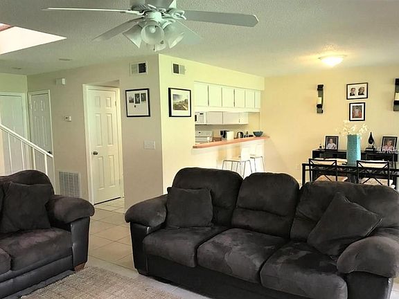 One of the largest homes on the gated community of Sandpointe! 2084 sq ft! Professionally enclosed patio adds a huge amount of additional living space. Downstairs in this two story home the kitchen has a nook area that can be used for casual dining as well as a breakfast bar. The open plan living room and dining room provides plenty of space for entertaining and large sliders which span the length of the home open up to an enclosed patio which overlooks the pretty landscaped communal area beyond. Upstairs are three bedrooms and two full bathrooms. The Master Suite has a separate flex area between the bedroom and bathroom, ideal for a crib, office, workout or hobby area. Residents have a community pool, gym and tennis courts. Sandpointe is a community in the heart of Dr. Phillips and is located on the famous 'Restaurant Row', home to some of the finest dining establishments in Orlando. Trader Joe's is conveniently located at the main gate to the community and the YMCA is within a mile. Zoned for A rated schools and within easy reach of I-4, shopping, theme parks and championship golf courses, this location is hard to beat.