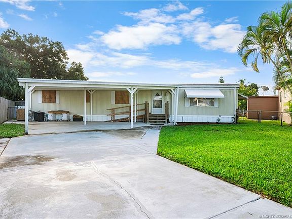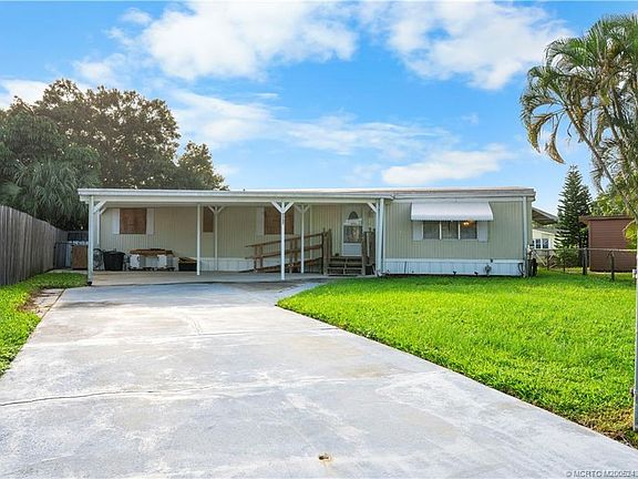 Charming mobile home on a cul-de-sac with a fenced yard and canal water views. Features include a boat dock and lift for a small boat, ideal for kayaking, fishing, and paddle boarding with direct ocean access. A fixed bridge with about 6 ft clearance offers convenient waterway access. The property includes two storage sheds. This is land-owned property with no HOA, perfect for a winter home, Airbnb investment, or permanent residence. Roof replaced in 2017; AC unit replaced in 2017. Conveniently close to I-95, beaches, and shopping, yet tucked away from the bustle.