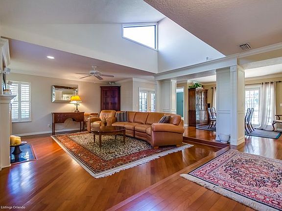 BEST VIEW in Orange Tree! This must see two story, four bedroom home is located in desirable gated Orange Tree in the heart of Dr. Phillips. "A" rated schools, Restaurant Row, The Attractions and one of the best golf courses in Central Florida are right outside your door. One of a kind view faces south that overlooks a park like setting and the 16th, 17th & 18th holes of Orange Tree. You will love it! The Master Suite is located on the first floor with tray ceiling, custom built ins, custom walk-in closet, and two sets of French doors that lead to the pool and private patio. The master bath has slate floors and a large walk in shower and jetted garden bath. Wood flooring in the living room and dining room lead to a beautiful pavered patio and pool for relaxation. There is crown molding throughout the home, with 2 wood burning fireplaces. Custom 84 bottle built-in wine rack in the dining room is unique. The Country French kitchen has Corian counters, 42 inch cabinets, tile floors and stainless appliances with an AMAZING outdoor view! Second fireplace is located in the family room with a 12 foot open door view that never fails to impress! Easy to entertain on a beautiful patio by an oversized pebble tech pool. Orange Tree has a GREAT Lakeside Recreation Center including heated pool, 4 lighted tennis courts and more! Home warranty included. Come view this must see house today!!