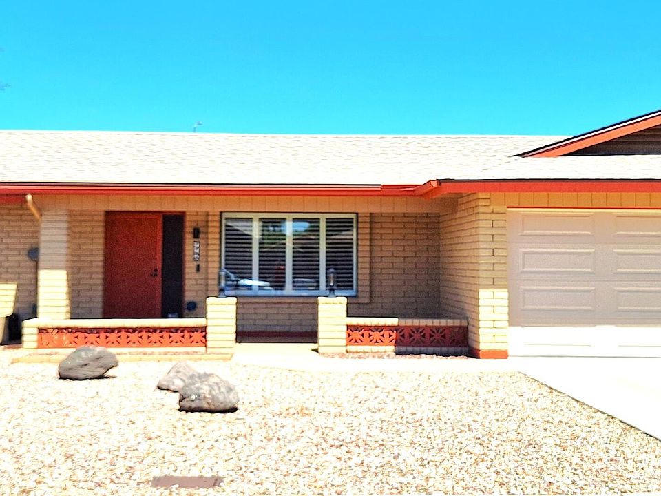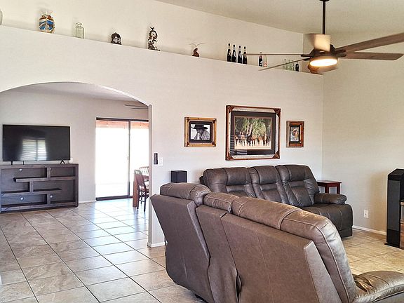 This gorgeous home sits on a corner lot and shows pride of ownership. There is a large front covered patio, making your way into a large vaulted living room with tile flooring and plantation shutters. The open kitchen overlooks the dining room and family room. The kitchen shows lots of raised panel oak cabinets, neutral Corian countertops, breakfast bar, stainless steel appliances, recessed lighting and a large pantry. Both bedrooms are large and the master bathroom has double sinks and a separate tub and shower. There is all the same flooring throughout this home. The backyard is private with a large covered patio with an extended slab and paver patio.