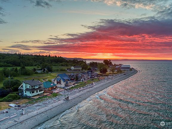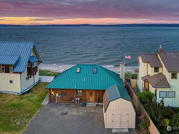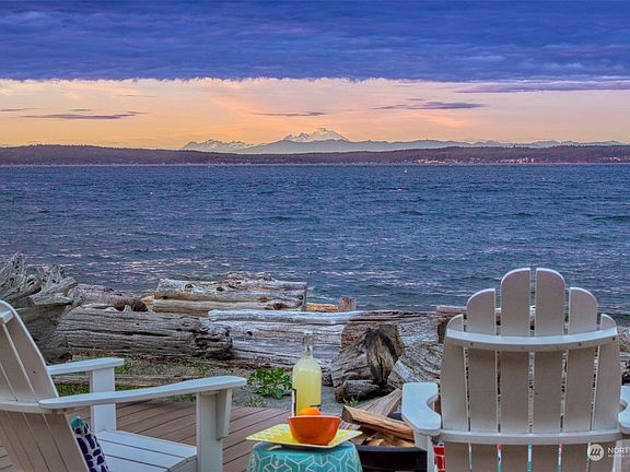 No bank waterfront retreat! One owner log cabin w/50’ of beach & unobstructed views of breathtaking Admiralty Inlet. Watch the mammoth cruise & cargo ships glide past against a backdrop of the majestic Cascades. Built w/logs harvested from Twisp, WA, w/a chimney & mantel made of stones hand collected from the beach. Tooled copper fireplace, solid maple floors, handcrafted metal stair railing. Kitchen w/stainless appliances, solid granite counters, maple cabinetry, & center island. Metal roof, composite waterfront deck, and 3 concrete bulkheads. Impeccably maintained, this home is a great getaway or fulltime residence. Stroll to the Hansville store, Norwegian Point Park, or Hansville Greenway trails. A lifestyle to refresh your soul!