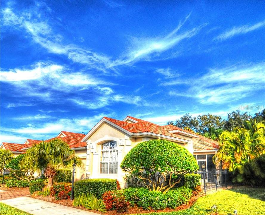 Palm Lakes is a small enclave of beautiful, single story homes with barrel tile roofs and mature, landscaped yards. The lush landscaping, surrounding lakes, clubhouse & heated pool, playground & gated entry provide the Florida lifestyle many buyers are seeking. Social events are held monthly in the clubhouse. This affordable priced, single story has been lovingly cared for & includes all the upgrades buyers want: quality wood laminate floors, new A/C, refrigerator, microwave, tray ceiling, crown molding & other recent upgrades offers a move-in ready home.The floor plan is well thought out with no wasted space. The architectural features and the warm neutral tones of the home add so much to the design and cozy style. The large living room is in the front of the home. The u-shaped kitchen and dining area have plenty of room for gourmet cooking and formal dining. The master bedroom has sliders to the lanai and includes a private room for a small office/study, craft space or sitting area. This home has an expanded lanai for outdoor living off the dining room and kitchen which makes entertaining a breeze. Maintenance free living gives owners more time to enjoy Florida's many warm, sunny days & outdoor lifestyle. University Parkway is an excellent location: near Downtown Sarasota and Bradenton, fantastic beaches of Siesta Key, Lido, Longboat & Anna Maria, Ringling Museum, UTC Mall, Excellent Restaurants, St Armand's & Shopping- all within 6 miles of the community. 3-D VIDEO, Floor Plan Picture Attached.